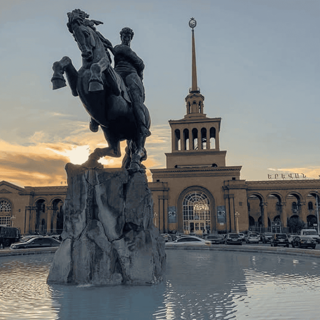 Երևանի ամենասիմվոլիկ վայրերից մեկը՝ կայարանամերձ հրապարակը, որտեղ մեկը մյուսի կողքին կանգնած են երկու խորհրդանշական կերտվածք՝ երկաթուղային կայարանի շենքը և Սասունցի Դավթի արձանը։ Երկուսն էլ իրենց պատմությամբ ու ճակատագրով պատկերում են ոչ միայն ճարտարապետական, այլև ազգային ոգու պատմությունը։